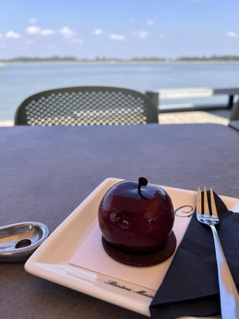 美術館の中のカフェで川を見ながら、ケーキを食べることもできました。